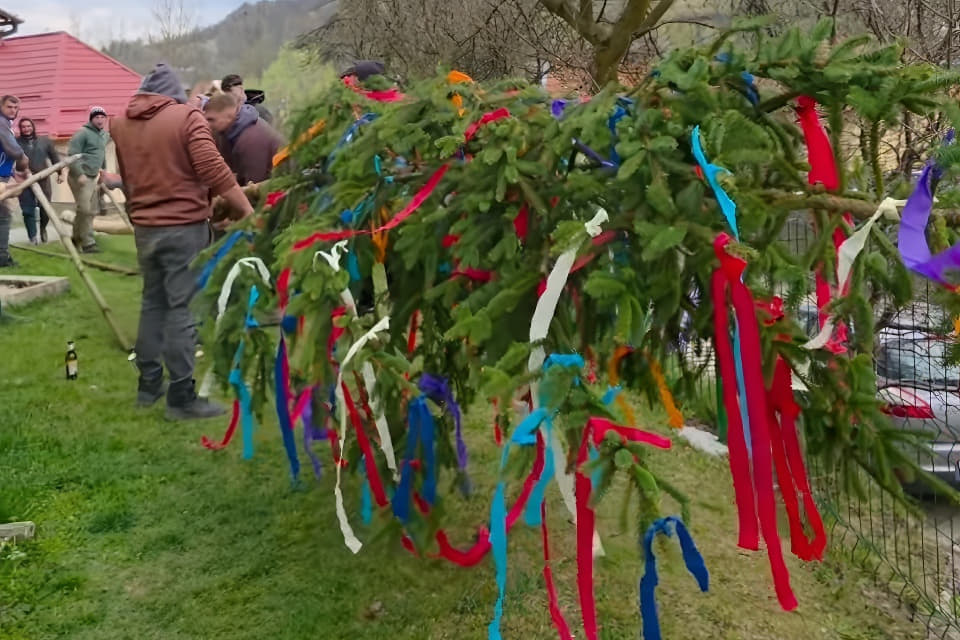 Împodobirea bradului de Paște la Trâmpoiele, tradiție păstrată cu sfințenie în fiecare an