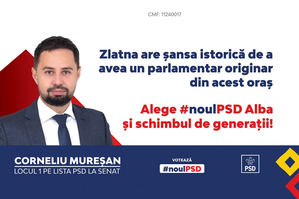 Comandat de Partidul Social Democrat – Organizația Județeană Alba / Executat de UNIREA PRES SRL – portal online: https://www.zlatnainfo.ro. Cod mandatar financiar coordonator: 11240017