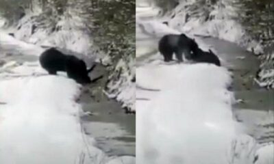 Din imagini se poate observa „ursulețul”, puțin timid în fața camerei foto, ascunzându-se printre crengi. Cel mai probabil, ursul a ieșit doar la o scurtă plimbare, nu se afla departe de „casă”, deoarece în apropiere se află Cheile Caprei.