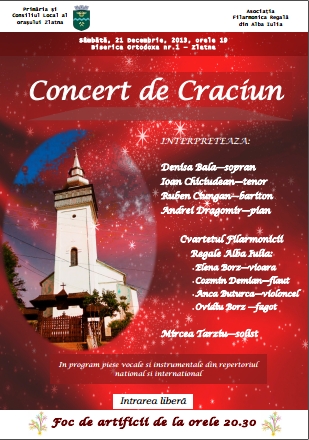 Înaintea sărbătorilor de iarnă, cetăţenii din Zlatna sunt invitaţi să ia parte la un concert de colinde tradiţionale româneşti şi cântece de Crăciun, oferit de artiştii...