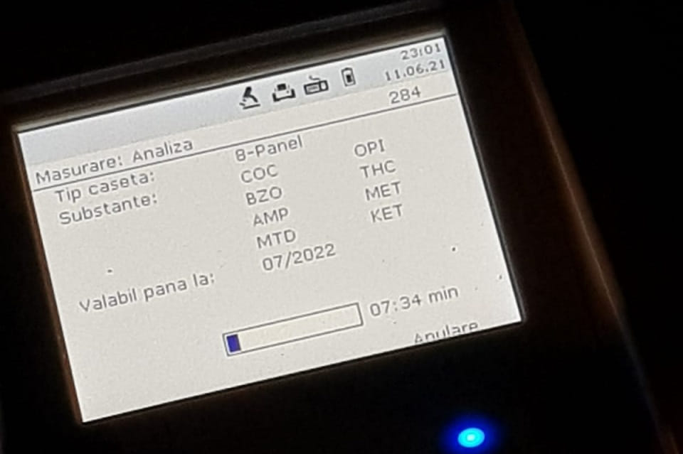 În urma testării consucătorului auto, cu aparatul drugtest, a rezultat că era sub influența substanțelor interzise, motiv pentru care a fost condus la spital unde i-au fost recoltate mostre biologice, pentru stabilirea prezenței în organism a substanțelor cu efect psihoactiv.