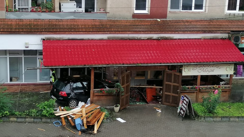 Un autoturism a distrus terasa cofetăriei „Moguț”, din Zlatna